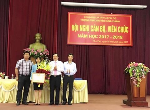Đồng chí Nguyễn Minh Tường, TUV - Giám đốc Sở GD&ĐT Phú Thọ tặng Giấy khen cho tập thể là tổ Sử - Giáo dục Công dân (Trường THPT Chuyên Hùng Vương)