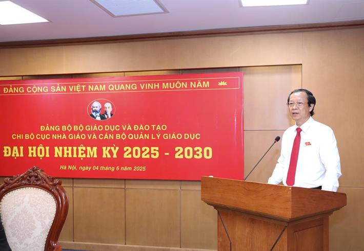Thứ trưởng cũng yêu cầu Đại hội bầu Ban chấp hành Chi bộ nhiệm kỳ 2025 - 2030 trên nguyên tắc tập trung, dân chủ và trách nhiệm. Sau Đại hội, Chi bộ sớm hoàn thiện hồ sơ gửi về Thường vụ Đảng ủy Bộ GDĐT để phê chuẩn kết quả. Đồng thời xây dựng chương trình, kế hoạch hành động, bám sát chỉ tiêu, nghị quyết trên tinh thần rõ người, rõ việc, rõ thời gian. Cùng với đó, rà soát, sửa đổi bổ sung, quy chế làm việc để thực hiện tốt nhiệm vụ, yêu cầu đề ra.