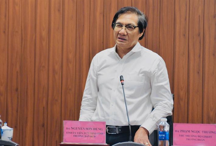Phó Chủ tịch UBND tỉnh Đồng Nai Nguyễn Sơn Hùng – Trưởng Ban chỉ đạo Kỳ thi tốt nghiệp THPT 2025 tỉnh Đồng Nai - trao đổi tại buổi làm việc với Đoàn công tác số 1