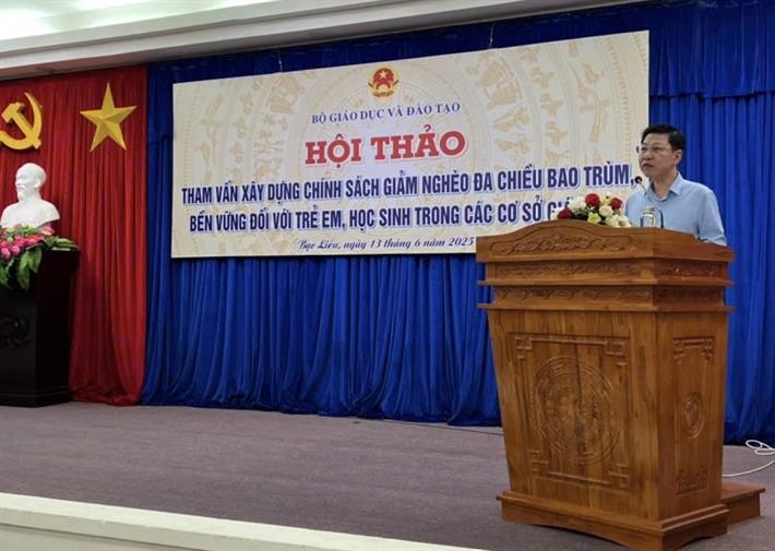 Hội thảo cũng là dịp để các đại biểu lắng nghe báo cáo đánh giá về các chính sách giảm nghèo đa chiều hiện nay đối với trẻ em, học sinh bao gồm: Chính sách miễn, giảm học phí, hỗ trợ chi phí học tập, chính sách hỗ trợ học sinh (ăn trưa, gạo, nhà ở, đồ dùng, trang thiết bị học tập), trợ cấp xã hội.
