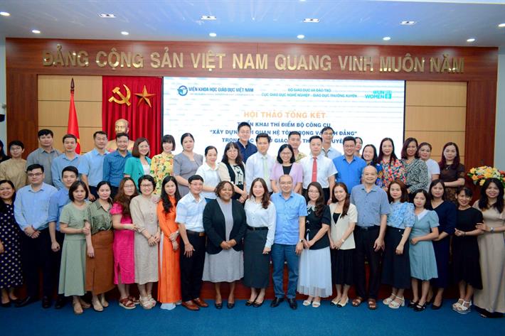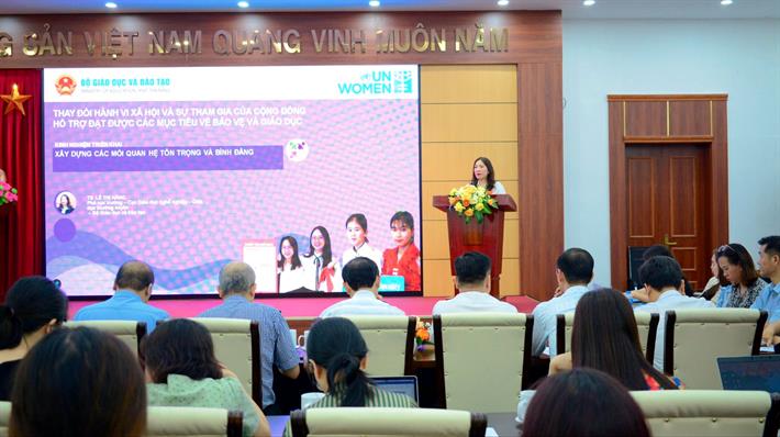 Chia sẻ tại hội thảo, bà Caroline Nyamayemombe, Đại diện Quốc gia UN Women tại Việt Nam, đánh giá cao những kết quả mà chương trình thí điểm đã đạt được, đồng thời ghi nhận những nỗ lực của ngành giáo dục Việt Nam trong việc xây dựng và đảm bảo môi trường học đường an toàn, bình đẳng cho mọi học sinh và học viên.
