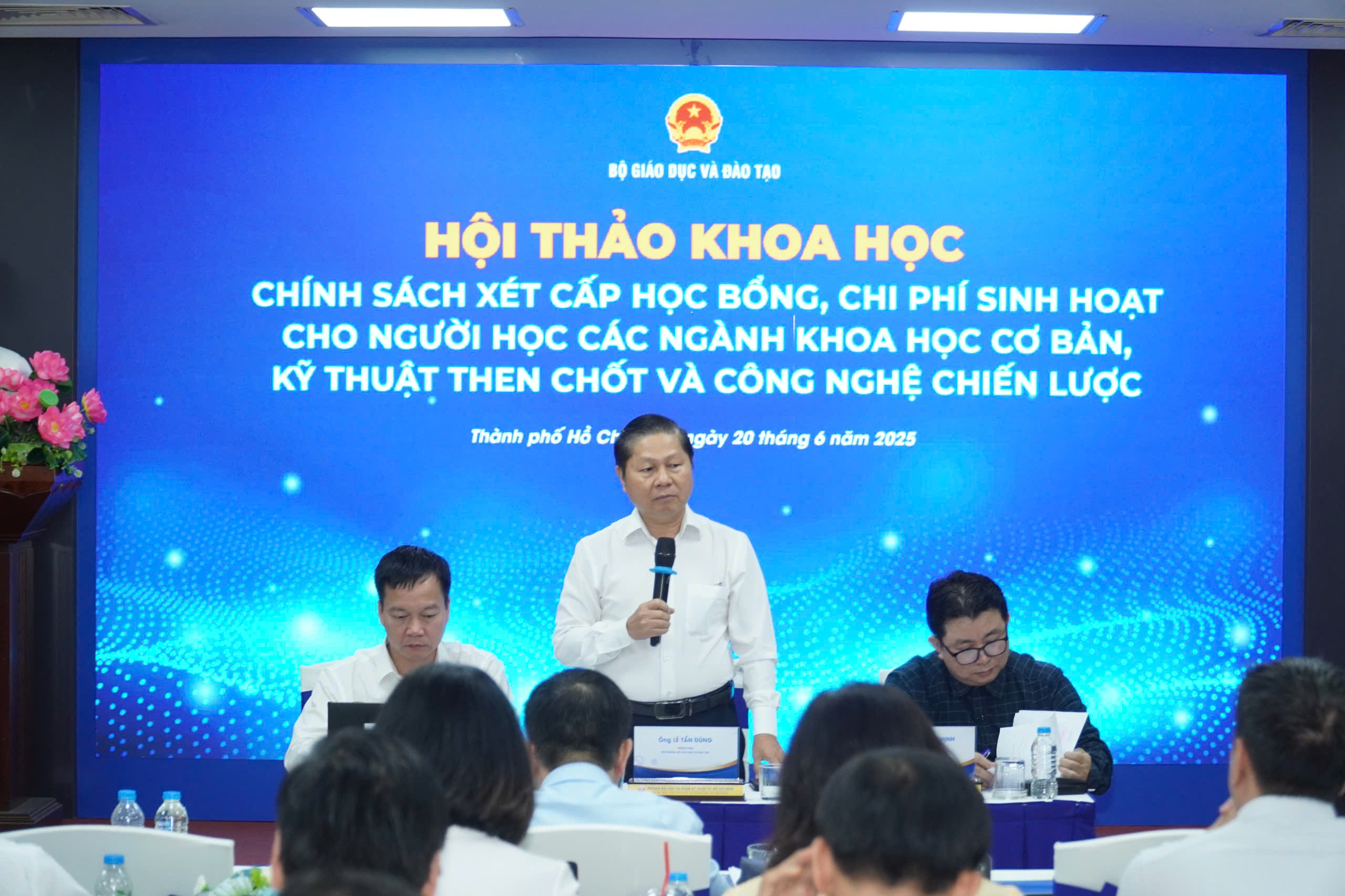 Phát biểu khai mạc, Thứ trưởng Lê Tấn Dũng nhấn mạnh, việc xây dựng chính sách học bổng lần này được triển khai theo tinh thần Nghị quyết số 57-NQ/TW ngày 22/12/2024 của Bộ Chính trị về phát triển khoa học, công nghệ, đổi mới sáng tạo và chuyển đổi số quốc gia, cũng như Nghị quyết số 71/NQ-CP ngày 1/4/2025 của Chính phủ về cập nhật Chương trình hành động thực hiện Nghị quyết 57-NQ/TW.
