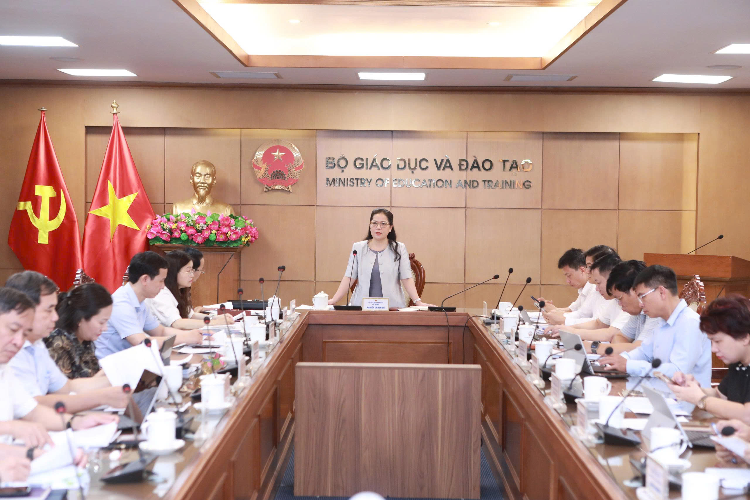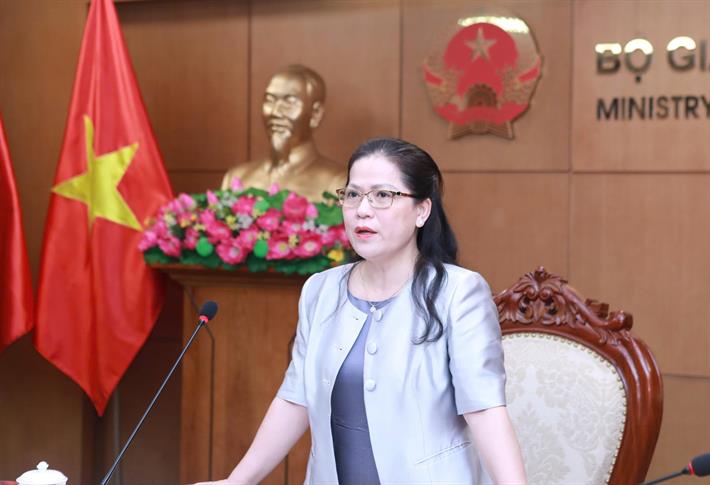 Vụ trưởng Vụ Giáo dục Phổ thông trao đổi tại cuộc họp