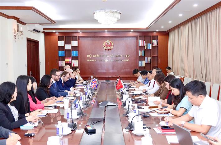 “Thông qua buổi làm việc lần này, Bộ GDĐT Việt Nam muốn học hỏi các chính sách của nước Anh về nhà giáo đối với các lĩnh vực đặc thù như dạy học ngôn ngữ, dạy học AI và các ngành mũi nhọn khác. Các chế độ đãi ngộ về đào tạo giáo viên, nhà khoa học trẻ đối với những lĩnh vực mũi nhọn, cũng là những vấn đề mà giáo dục của Việt Nam rất quan tâm” – Thứ trưởng chia sẻ.