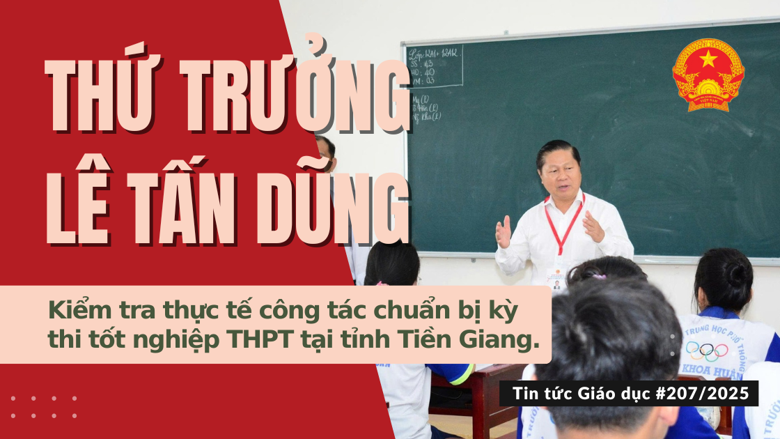 Ngày 9/6/2025, Đoàn công tác số 2 của Ban Chỉ đạo cấp quốc gia kỳ thi tốt nghiệp Trung học phổ thông năm 2025 do Thứ trưởng Bộ Giáo dục và Đào tạo Lê Tấn Dũng dẫn đầu đã có buổi làm việc và kiểm tra thực tế công tác chuẩn bị tổ chức kỳ thi tại tỉnh Tiền Giang.