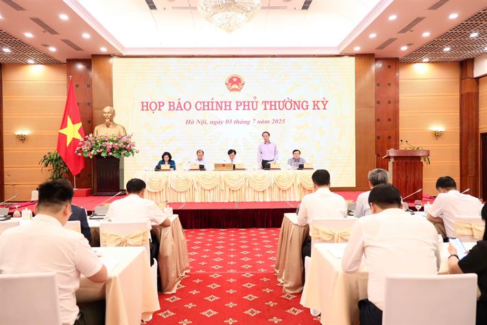 Quang cảnh Họp báo Chính phủ thường kỳ tháng 6/2025