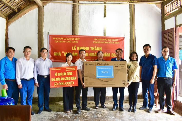 Thấu hiểu nỗi vất vả của những giáo viên có hoàn cảnh khó khăn, vượt khó để hoàn thành công tác giáo dục tại các địa phương, với tấm lòng tương thân tương ái, cán bộ, nhân viên Công đoàn cơ quan Bộ GDĐT cùng Tập đoàn Giáo dục Equest, Trường Einstein Hồ Chí Minh đã hỗ trợ kinh phí xây nhà cho gia đình thầy giáo Đinh Công Nghiệp. Công đoàn cơ sở Cục Quản lý chất lượng, Bộ GDĐT tặng gia đình thầy giáo 1 chiếc tivi 43 inch.