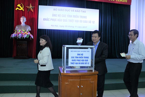 Lãnh đạo Bộ Giáo dục và Đào tạo quyên góp ủng hộ các tỉnh miền Trung khắc phục hậu quả cơn bão số 12