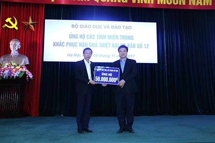 Thứ trưởng Nguyễn Hữu Độ tiếp nhận ủng hộ của Trường Đại học Sư phạm Hà Nội