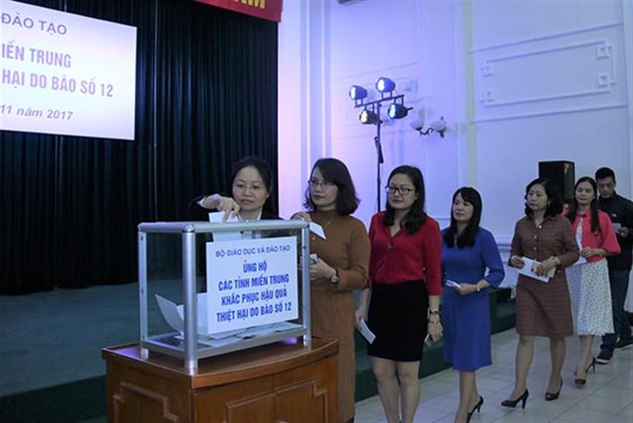 Ngay tại lễ phát động, trên 2,1 tỷ đồng đã được Công đoàn Giáo dục Việt Nam, các cơ sở giáo dục, cán bộ, công chức, viên chức Bộ Giáo dục và Đào tạo quyên góp để gửi tới ngành Giáo dục các tỉnh miền Trung khắc phục hậu quả thiệt hại do bão số 12. Đầu tuần tới, các đoàn công tác của Bộ Giáo dục và Đào tạo do lãnh đạo Bộ và lãnh đạo Công đoàn Giáo dục Việt Nam dẫn đầu sẽ tới các tỉnh chịu thiệt hại do bão số 12 để trao tận tay số tiền quyên góp này.