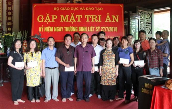 Tri ân các đối tượng chính sách là hoạt động thường niên của Công đoàn Cơ quan Bộ GD&ĐT. Tháng 7 hàng năm, Công đoàn đều tổ chức chuyến đi về nguồn cho các đối tượng chính sách, các thương binh, con liệt sĩ, con thương binh là các cán bộ công chức đang công tác trong cơ quan Bộ. Năm 2017, Công đoàn Cơ quan Bộ GD&ĐT đã tổ chức đoàn gần 50 cán bộ công chức đi viếng và thắp hương các anh hùng liệt sĩ tại các nghĩa trang Quảng Trị, nghĩa trang ngã ba Đồng Lộc, dâng hương Đại tướng Võ Nguyên Giáp tại Quảng Bình…