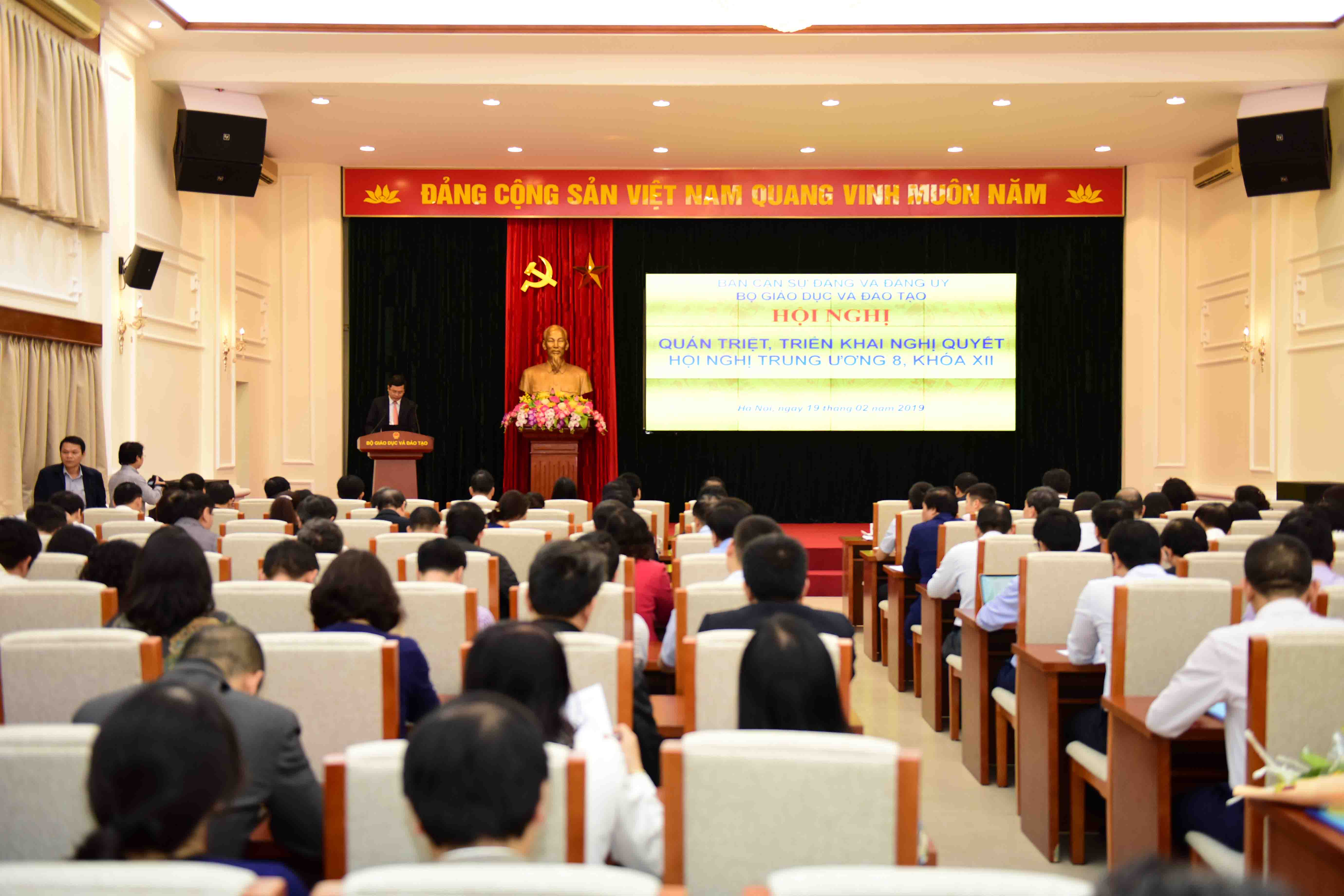 Tại Hội nghị, toàn thể đảng viên thuộc Đảng bộ Bộ GD&ĐT đã được học tập, quán triệt các nội dung: Nghị quyết số 36-NQ/TW về chiến lược phát triển bền vững kinh tế biển Việt Nam đến năm 2030, tầm nhìn đến năm 2045; Quy định số 08-QĐi/TW về trách nhiệm nêu gương của cán bộ, đảng viên, trước hết là Ủy viên Bộ Chính trị, Ủy viên Ban Bí thư, Ủy viên Ban Chấp hành Trung ương; Kết luận số 37-KL/TW về tình hình kinh tế - xã hội, ngân sách nhà nước năm 2018; kế hoạch phát triển kinh tế - xã hội, dự toán ngân sách nhà nước năm 2019.