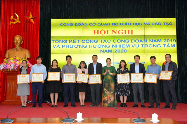 Ban Chấp hành Công đoàn cơ quan Bộ GDĐT đã tặng giấy khen cho cá nhân, tập thể công đoàn có thành tích xuất sắc trong hoạt động công đoàn năm 2019