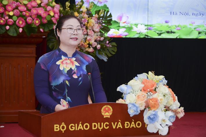 Chủ tịch Công đoàn cơ quan Bộ GDĐT Trịnh Hoài Thu phát biểu tại buổi lễ