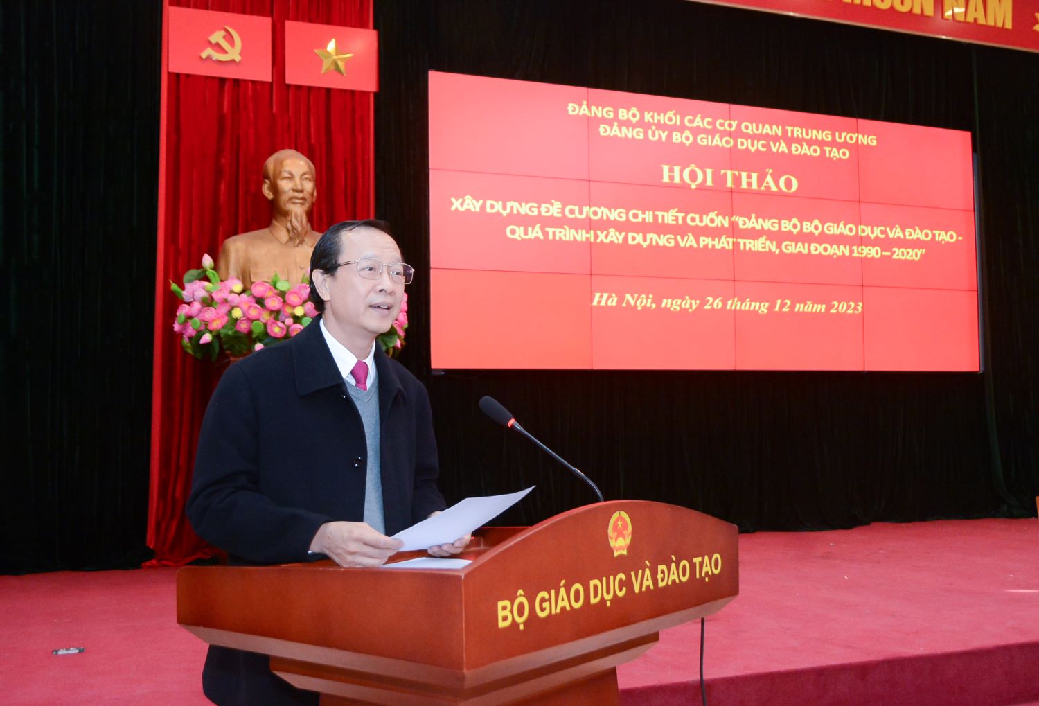 Phát biểu tại hội thảo, Thứ trưởng Phạm Ngọc Thưởng, Bí thư Đảng ủy Bộ GDĐT cho biết: Cuốn “Đảng bộ Bộ GDĐT - Quá trình xây dựng và phát triển, giai đoạn 1990-2020” nhằm tái hiện quá trình xây dựng và phát triển của Đảng bộ Bộ GDĐT trong giai đoạn lịch sử rất quan trọng của ngành - khi Đảng xác định giáo dục và đào tạo là quốc sách hàng đầu. Từ đó, tổng kết quá trình lãnh đạo và những đóng góp của Đảng bộ đối với sự phát triển của đất nước.