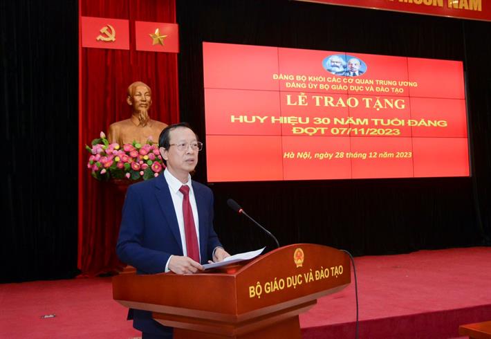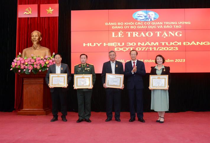 Trong khuôn khổ Hội nghị, Thứ trưởng Phạm Ngọc Thưởng trao Huy hiệu 30 năm tuổi Đảng cho 4 đảng viên và trao Giấy khen cho các tổ chức Đảng, cá nhân đảng viên có thành tích xuất sắc trong năm 2023 và trong 5 năm công tác liên tục.