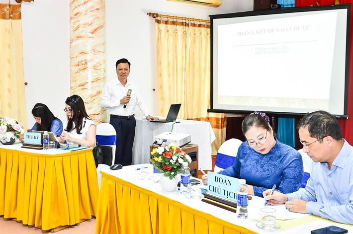 Ông Nguyễn Sinh Thành, Phó Chủ tịch Công đoàn cơ quan Bộ GDĐT báo cáo tại hội nghị
