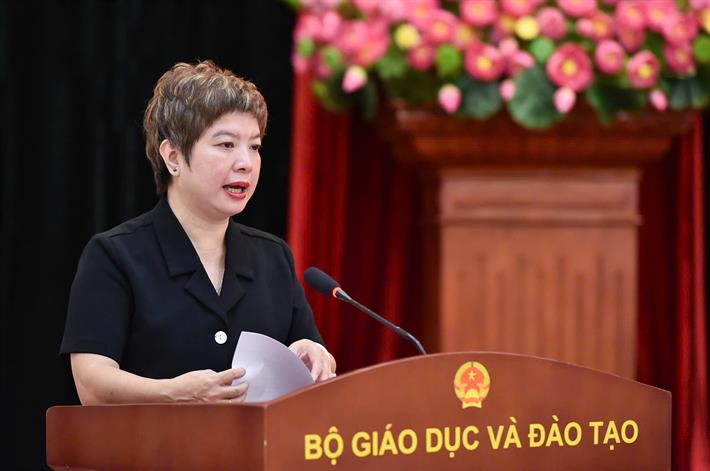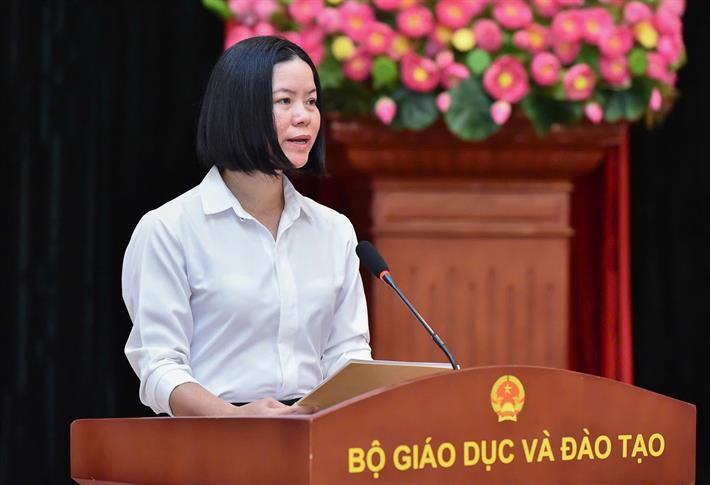 Phó Bí thư thường trực Đảng ủy Bộ GDĐT Vũ Thị Hạnh phát biểu tại hội thảo
