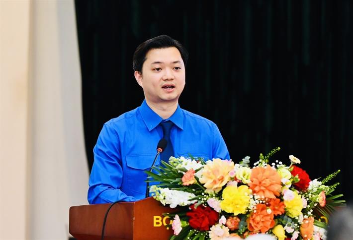 Bí thư Trung ương Đoàn Thanh niên Cộng sản Hồ Chí Minh Nguyễn Minh Triết phát biểu tại buổi lễ