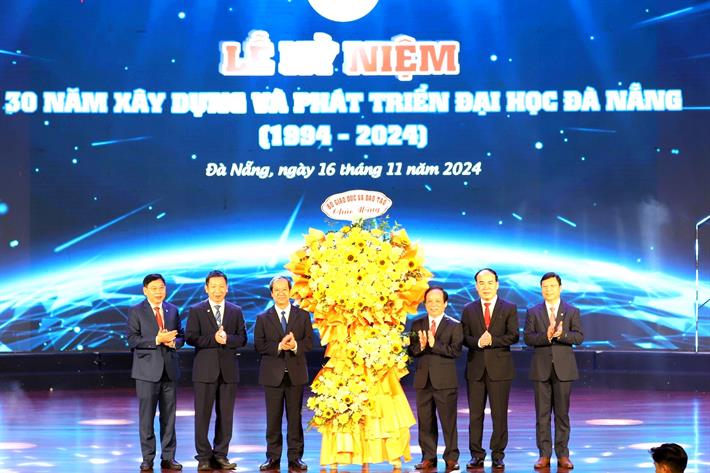 Bộ trưởng Nguyễn Kim Sơn tặng hoa chúc mừng Đại học Đà Nẵng nhân kỷ niệm 30 năm xây dựng và phát triển