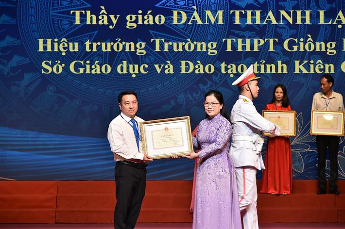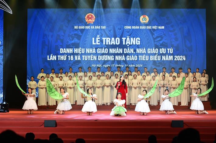 Tại buổi lễ, thừa ủy quyền của Chủ tịch nước, Bộ GDĐT tổ chức Lễ trao tặng danh hiệu Nhà giáo nhân dân cho 21 nhà giáo thuộc các bộ, ngành, địa phương và trao tặng danh hiệu Nhà giáo ưu tú cho 65 nhà giáo trực thuộc Bộ GDĐT.