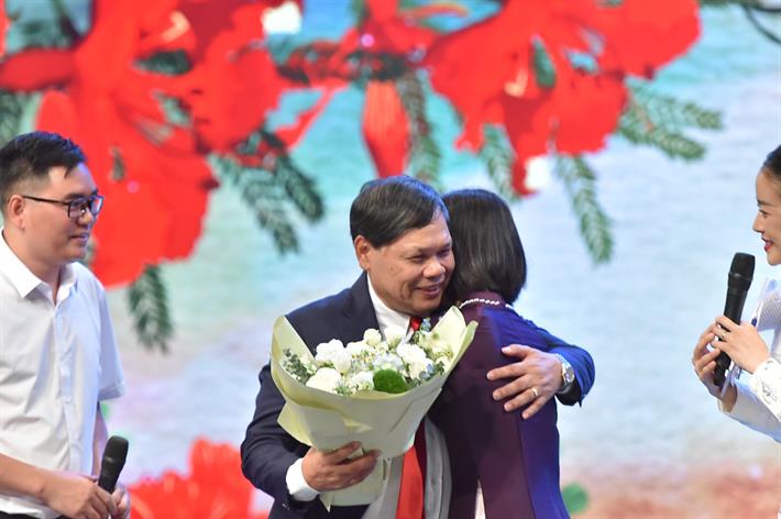 GS.TS Trần Danh Cường, giảng viên Trường Đại học Y Hà Nội đón nhận tình cảm của cựu sinh viên trên sân khấu chương trình