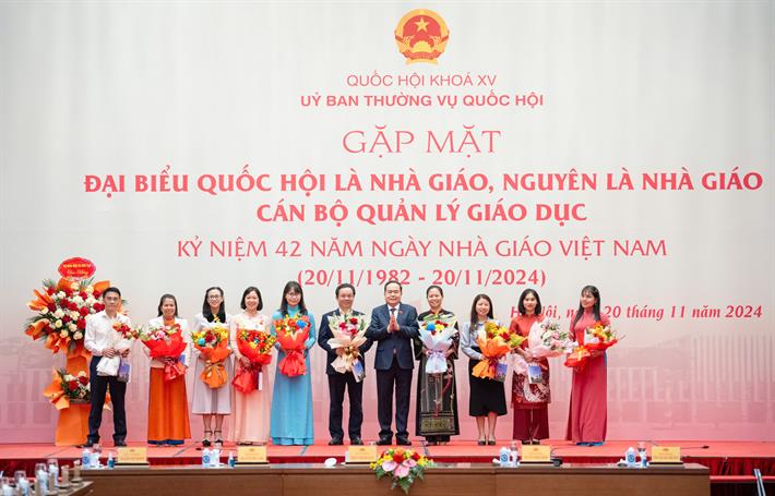 Chủ tịch Quốc hội tặng hoa chúc mừng các đại biểu là nhà giáo, nguyên là nhà giáo, cán bộ quản lý giáo dục nhân dịp 20/11