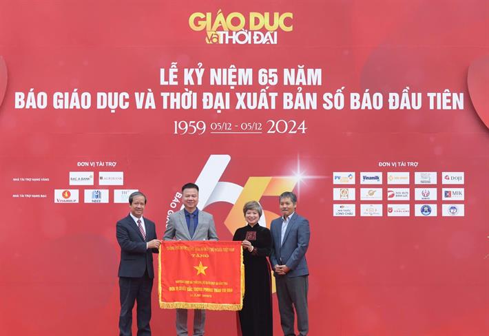 Bộ trưởng Nguyễn Kim Sơn trao Cờ thi đua của Chính phủ cho lãnh đạo Báo Giáo dục và Thời đại