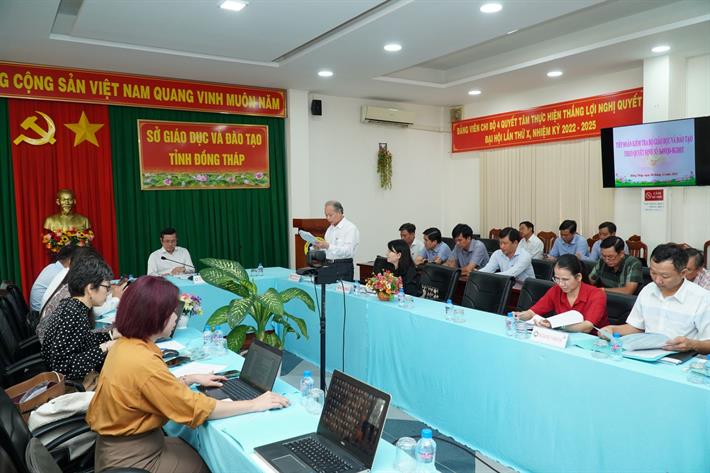 Đại diện Sở GDĐT tỉnh Đồng Tháp báo cáo tại cuộc làm việc