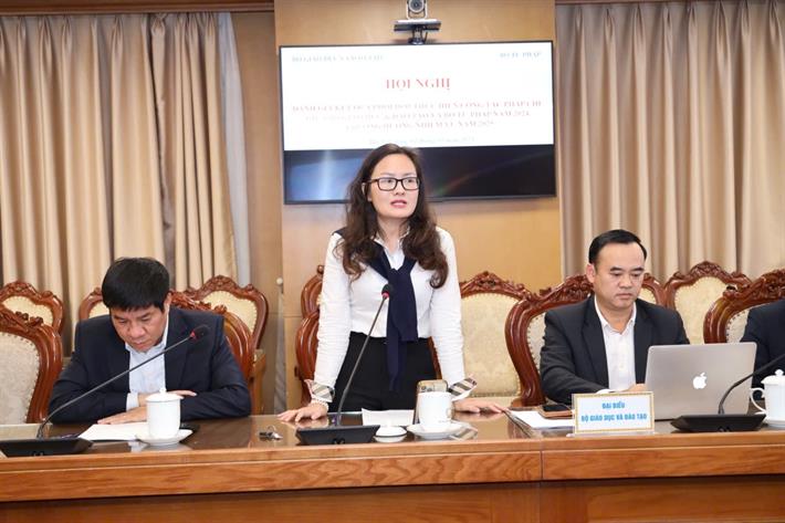 Báo cáo kết quả phối hợp thực hiện công tác pháp chế giữa Bộ GDĐT và Bộ Tư pháp năm 2024, Phó Vụ trưởng Vụ Pháp chế (Bộ GDĐT) Đào Hồng Cường cho biết: Năm 2024, Bộ GDĐT đã phối hợp chặt chẽ với các đơn vị liên quan của Bộ Tư pháp trong việc tổ chức soạn thảo các dự án, dự thảo văn bản quy phạm pháp luật liên quan đến lĩnh vực giáo dục. Với sự phối hợp chặt chẽ, hiệu quả của Bộ Tư pháp, Bộ GDĐT đã chủ trì soạn thảo và trình ban hành hoặc ban hành theo thẩm quyền 29 văn bản.