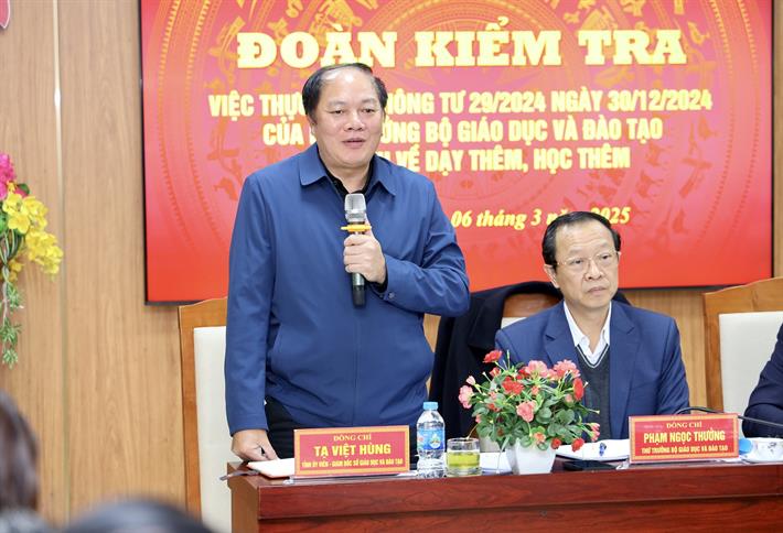 Để triển khai Thông tư 29 và quản lý hiệu quả dạy thêm, học thêm trong cả trước mắt và lâu dài, Thứ trưởng đề nghị ngành Giáo dục Bắc Giang tiếp tục làm tốt công tác tuyên truyền nâng cao nhận thức. Việc này Bắc Giang đang làm tốt và làm chủ động, toàn tâm toàn ý vì học sinh, nên cần làm tốt hơn nữa. Trong đó, tập trung tuyên truyền lý do ban hành, ý nghĩa của Thông tư 29; giải thích rõ hệ luỵ học thêm, lợi ích của tự học; tuyên truyền về tinh thần tự tôn, tự trọng của nhà giáo; tuyên truyền để xã hội hiểu, quản lý dạy thêm, học thêm không thể riêng ngành Giáo dục làm được…