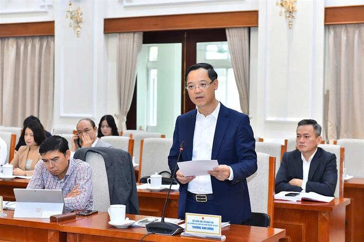 Cục trưởng Cục GDNN&GDTX Trương Anh Dũng báo cáo tại buổi làm việc
