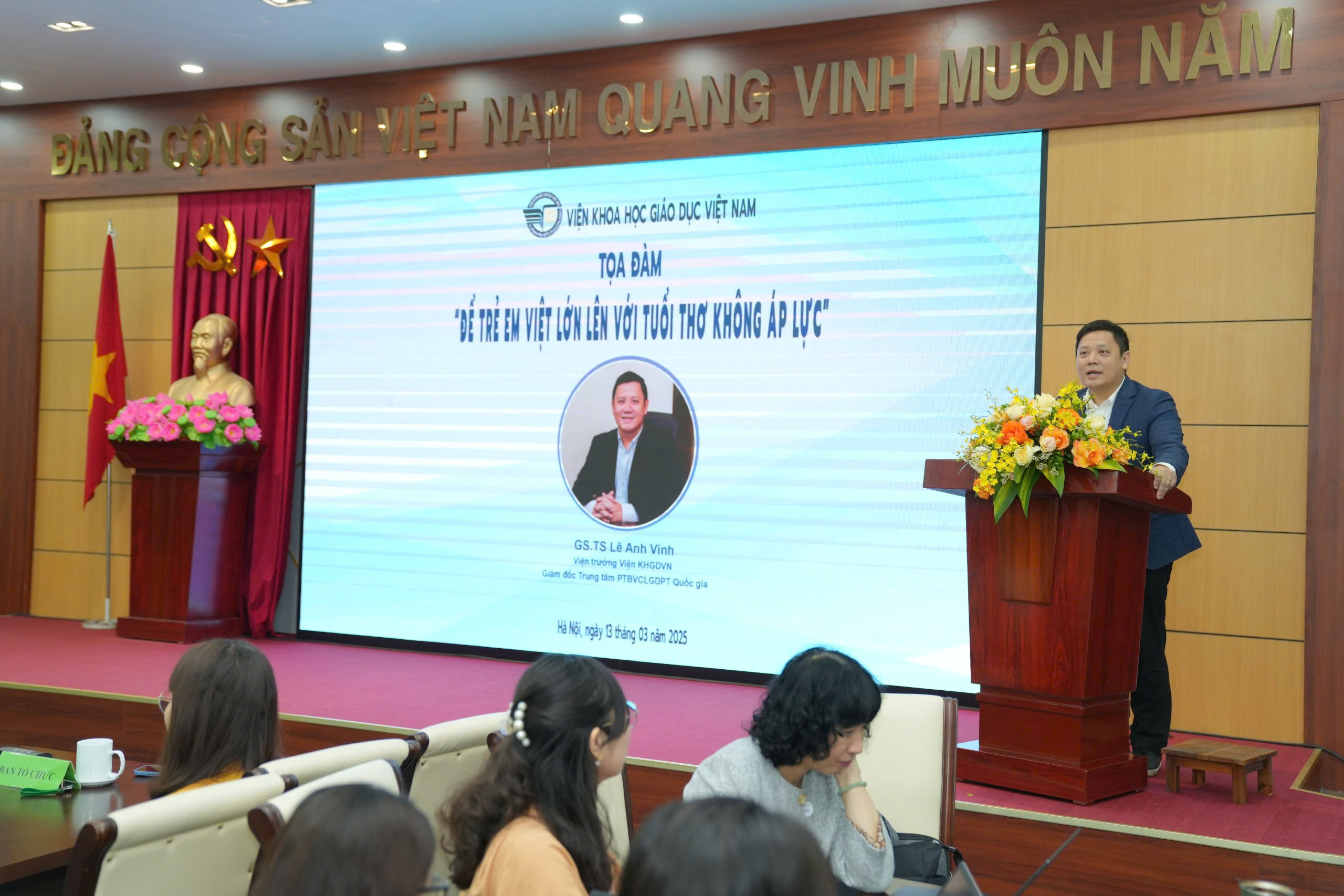 Nhấn mạnh chủ đề làm như thế nào để trẻ em Việt lớn lên với tuổi thơ không áp lực luôn nhận được sự quan tâm lớn từ các nhà trường, giáo viên và phụ huynh học sinh, Viện trưởng Lê Anh Vinh mong muốn, tọa đàm sẽ là nơi các chuyên gia, nhà khoa học, cán bộ quản lý, phụ huynh học sinh sẽ có những chia sẻ ở nhiều góc nhìn khác nhau để làm tốt hơn trong việc nuôi dưỡng thế hệ tương lai, để các em có cuộc sống có nhiều niềm vui, không chịu nhiều áp lực từ cuộc sống.