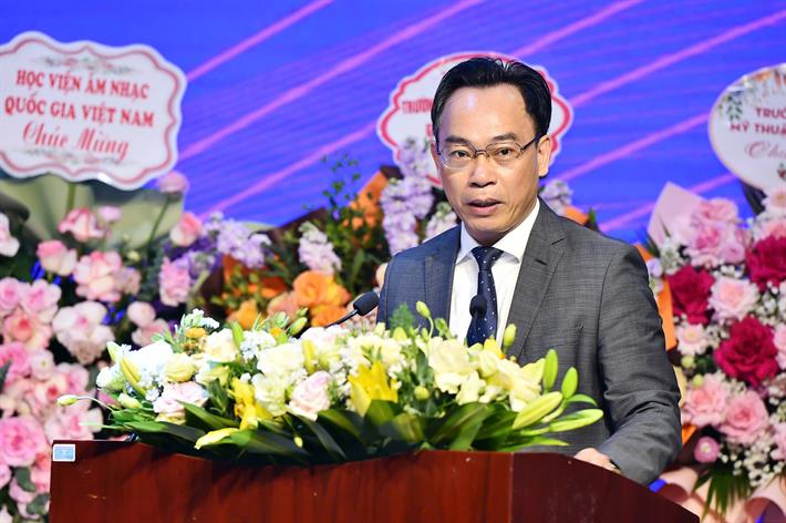 Chúc mừng PGS.TS Lê Vinh Hưng và tập thể Trường Đại học Sư phạm Nghệ thuật Trung ương, Thứ trưởng Hoàng Minh Sơn ghi nhận, nhà trường không chỉ khẳng định được vai trò trong cung cấp nguồn nhân lực chất lượng cao cho ngành giáo dục, mà còn cho các lĩnh vực nghệ thuật biểu diễn, sáng tạo và bảo tồn văn hóa.
