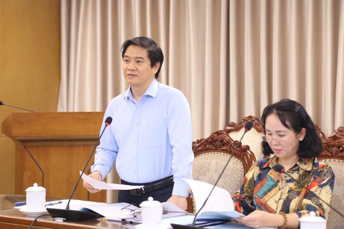 Vụ trưởng Vụ Giáo dục Phổ thông Thái Văn Tài báo cáo tại phiên họp