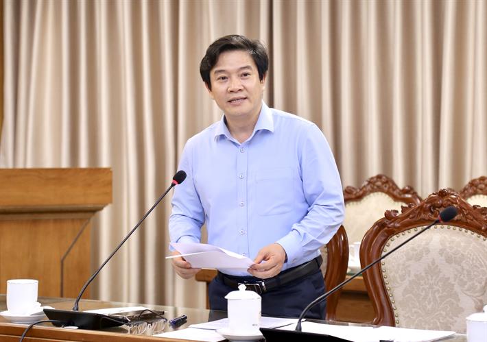 Vụ trưởng Vụ Giáo dục phổ thông Thái Văn Tài báo cáo tại cuộc họp