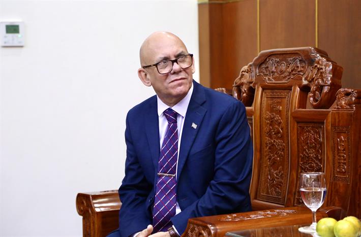 Thứ trưởng Bộ Giáo dục Đại học Cuba Reynaldo Velázquez Zaldívar trao đổi tại buổi làm việc