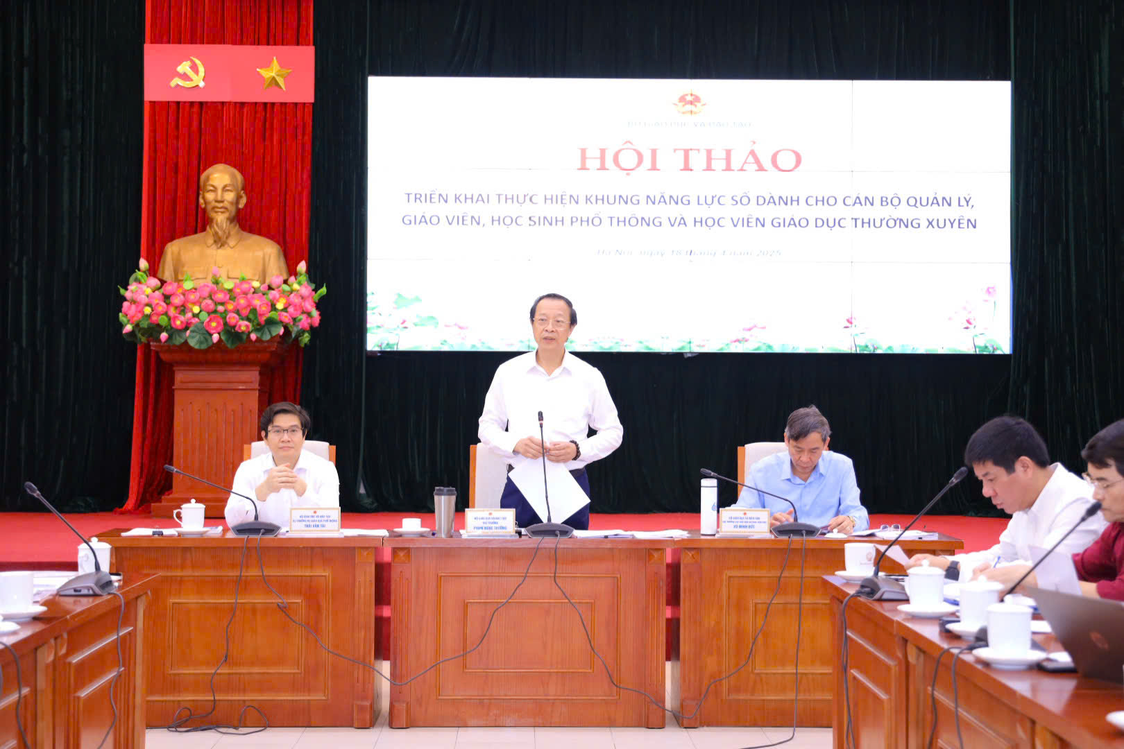 Báo cáo tại hội thảo, Cục trưởng Cục Nhà giáo và Cán bộ quản lý giáo dục Vũ Minh Đức cho biết: trong những năm qua, chuyển đổi số trong giáo dục đã đạt được những kết quả bước đầu đáng khích lệ. Tuy nhiên, để quá trình này đi vào chiều sâu, thực chất và hiệu quả, cần một cách tiếp cận hệ thống; trong đó, phát triển năng lực số cho học sinh, giáo viên được xác định là hai trụ cột nền tảng. Năng lực số không còn là kỹ năng bổ trợ mà đã trở thành năng lực cốt lõi, thiết yếu cho công dân trong thời đại cách mạng 4.0.