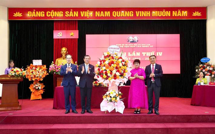 Đại diện Ban Thường vụ Đảng ủy Bộ GDĐT tặng hoa chúc mừng Đại hội Đảng bộ Cục Hợp tác quốc tế