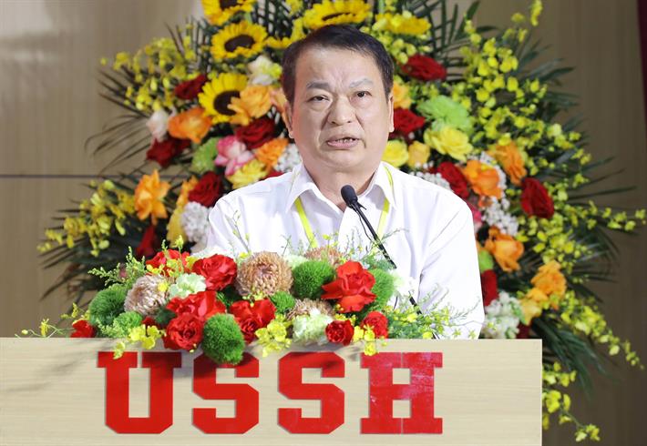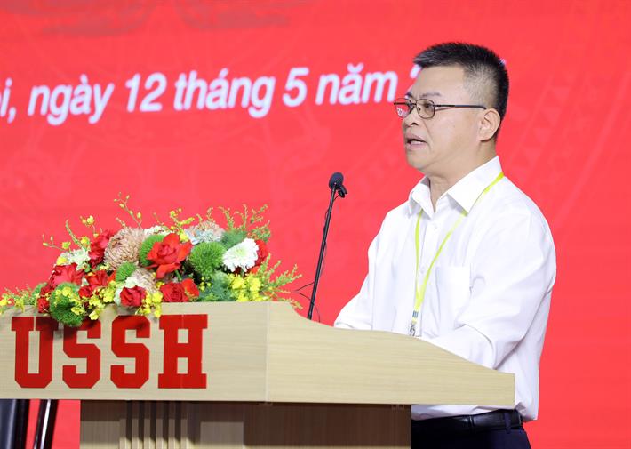 GS.TS Hoàng Anh Tuấn, Hiệu trưởng Trường Đại học Khoa học Xã hội và Nhân văn, Đại học Quốc gia Hà Nội báo cáo tại hội thảo