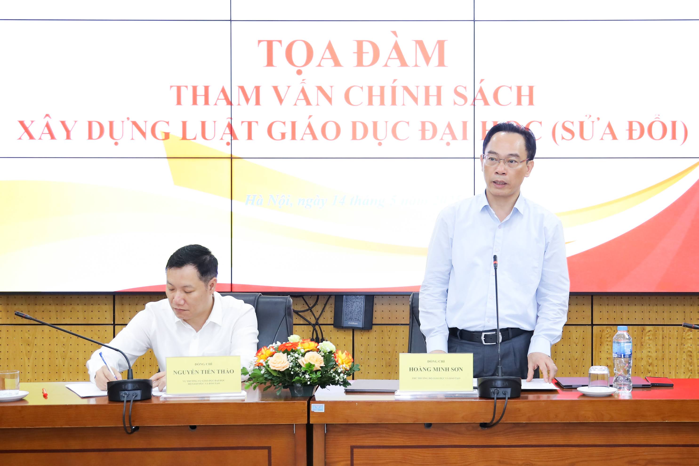 Phát biểu khai mạc tọa đàm, Thứ trưởng Hoàng Minh Sơn nhấn mạnh: Đây là một tọa đàm có ý nghĩa hết sức quan trọng, khi Bộ GDĐT được Chính phủ giao chủ trì việc sửa đổi Luật Giáo dục đại học (GDĐH) – một nhiệm vụ mang tính chiến lược, đồng thời cũng là cơ hội lớn đối với toàn ngành giáo dục.