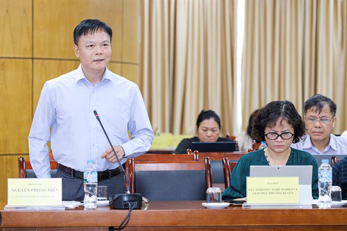 Tại tọa đàm, Vụ trưởng Vụ Giáo dục đại học (Bộ GDĐT) Nguyễn Tiến Thảo đã trình bày thuyết minh quy phạm hóa chính sách của dự án Luật Giáo dục đại học sửa đổi.