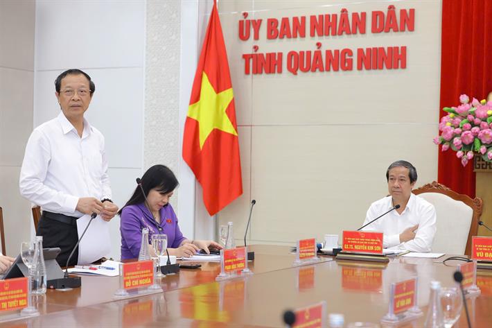 Phát biểu tại buổi làm việc, Thứ trưởng Thường trực Bộ GDĐT Phạm Ngọc Thưởng ghi nhận những “điểm sáng” của giáo dục Quảng Ninh, đồng thời đánh giá cao sự chủ động của tỉnh trong việc rà soát các điều kiện để thực hiện các chủ trương lớn như dạy học 2 buổi/ngày, miễn học phí cho học sinh.