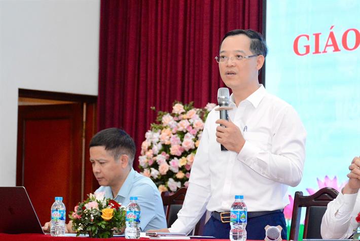 Phó Vụ trưởng Vụ Giáo dục đại học Nguyễn Anh Dũng trao đổi tại hội nghị