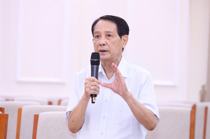 TSKH Phạm Đỗ Nhật Tiến, nguyên Trợ lí Bộ trưởng Bộ GDĐT trao đổi tại phiên họp
