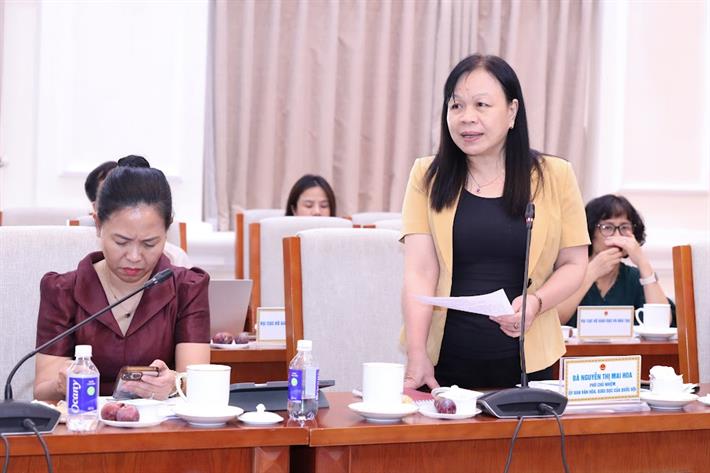 Phó Chủ nhiệm Ủy ban Văn hóa và Xã hội của Quốc hội Nguyễn Thị Mai Hoa phát biểu tại phiên họp