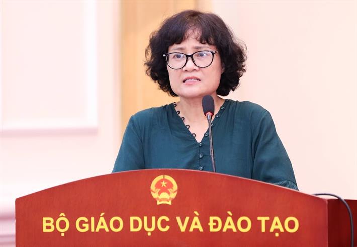 Phó Cục trưởng Cục GDNN và GDTX Nguyễn Thị Việt Hương báo cáo tại phiên họp