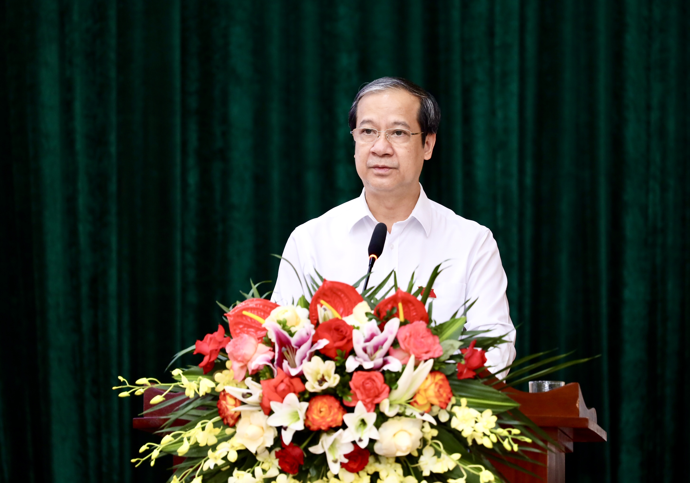 Bộ trưởng Nguyễn Kim Sơn báo cáo tại buổi tiếp xúc cử tri