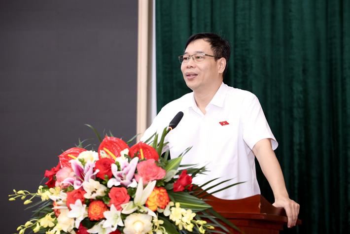 Ông Đỗ Đức Hồng Hà, Phó Chủ nhiệm Uỷ ban Pháp luật và Tư pháp của Quốc hội báo cáo tại buổi tiếp xúc cử tri