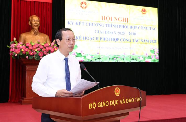 Theo Bí thư Đảng uỷ Bộ GDĐT, lễ ký kết hôm nay cũng là dịp quan trọng để nhìn lại những kết quả nổi bật đã đạt được trong công tác phối hợp giữa hai cơ quan trong thời gian qua. Đồng thời, xác định khuôn khổ, nội dung, nguyên tắc và phương thức phối hợp triển khai nhiệm vụ trong thời gian tới, đặc biệt trong giai đoạn 2025 - 2030, khi đất nước ta đứng trước ngưỡng cửa quan trọng trong quá trình phát triển kinh tế - xã hội, bước vào kỷ nguyên mới, kỷ nguyên vươn mình, phát triển giàu mạnh, thịnh vượng của dân tộc.
